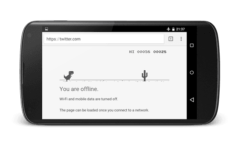 This is not only on Chrome for desktop but it's available on your Chrome for Android as well. Now, switch to airplane mode and jump, jump, jump all the way. But wait, how do I do that? Instead of pressing the “space” key, tap the screen to begin.